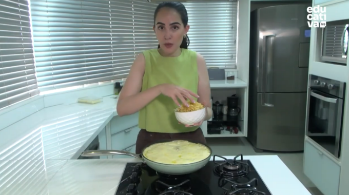 Durante a apresentação, Camila mostrou passo a passo como preparar a massa, que leva ovos, leite, açúcar, cacau em pó, óleo, farinha de trigo, fermento em pó e bicarbonato, ressaltando que o bicarbonato ajuda a intensificar a cor do chocolate. Para quem não desejar usá-lo, a dica é acrescentar um pouco de sal para equilibrar o sabor doce.