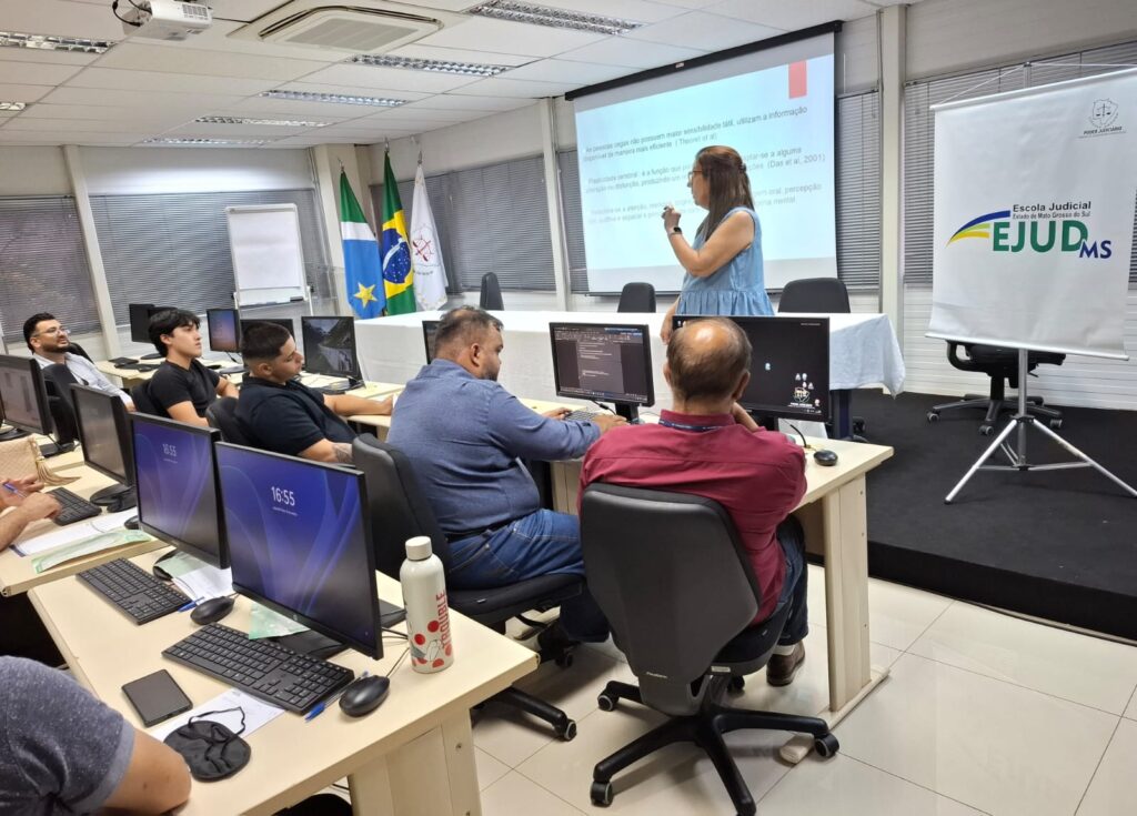 Servidores do Tribunal de Justiça de Mato Grosso do Sul (TJMS) participam, nesta semana, do curso “Introdução à Audiodescrição”, voltado à promoção da acessibilidade comunicacional no âmbito do Judiciário. A capacitação acontece na Escola Judicial do Estado de Mato Grosso do Sul (Ejud-MS) e segue até esta sexta-feira (13).